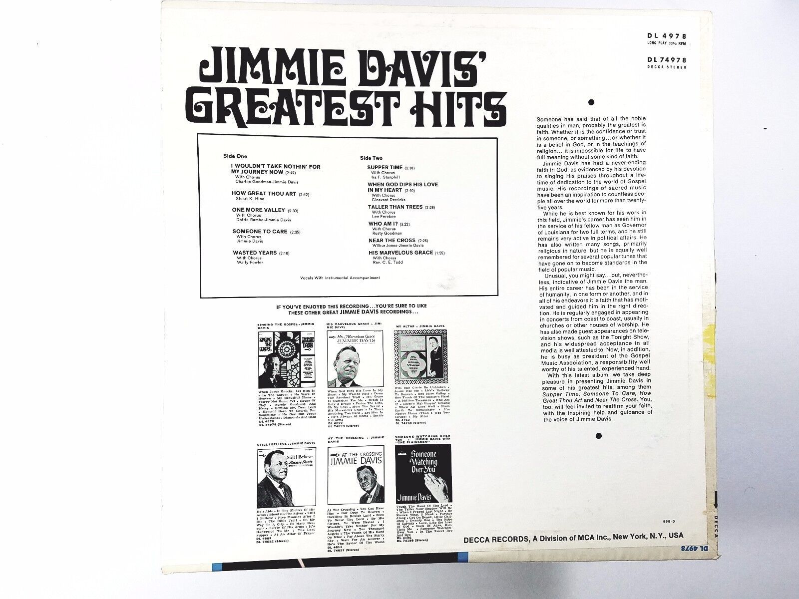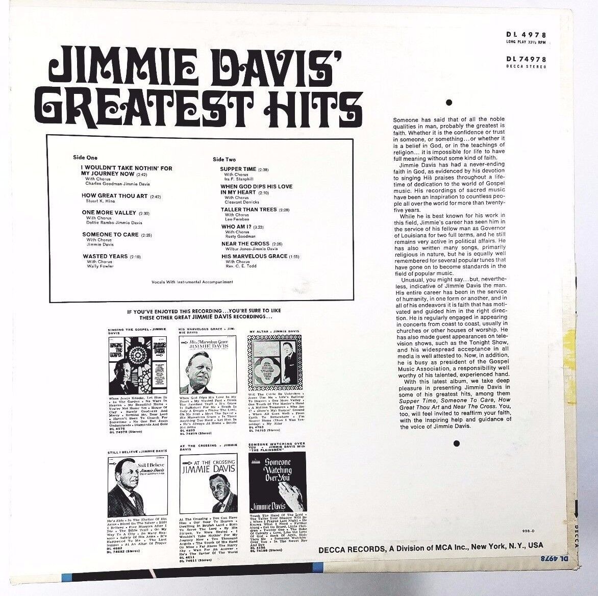 Jimmie Davis Greatest Hits Decca Dl 74978 and 50 similar items