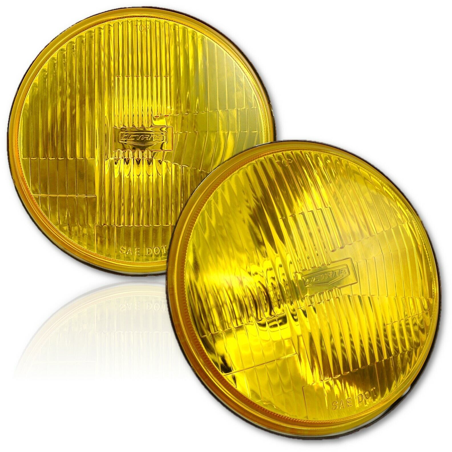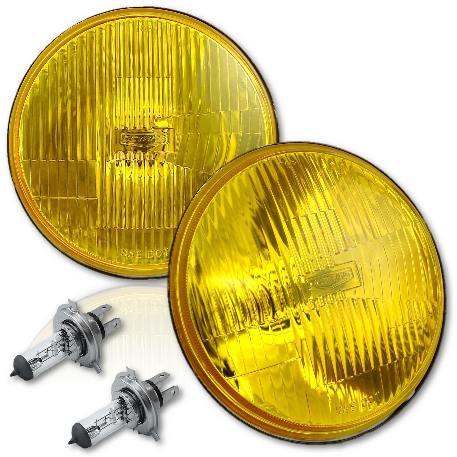 PAIR - 7" Inch Round Yellow Stock Glass Lens / Metal Housing Headlamps
