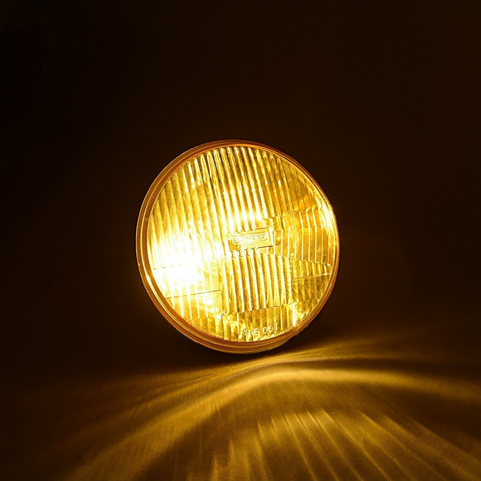 bulbs) of 7" round 12 volt high/low beam stock yellow glass H4