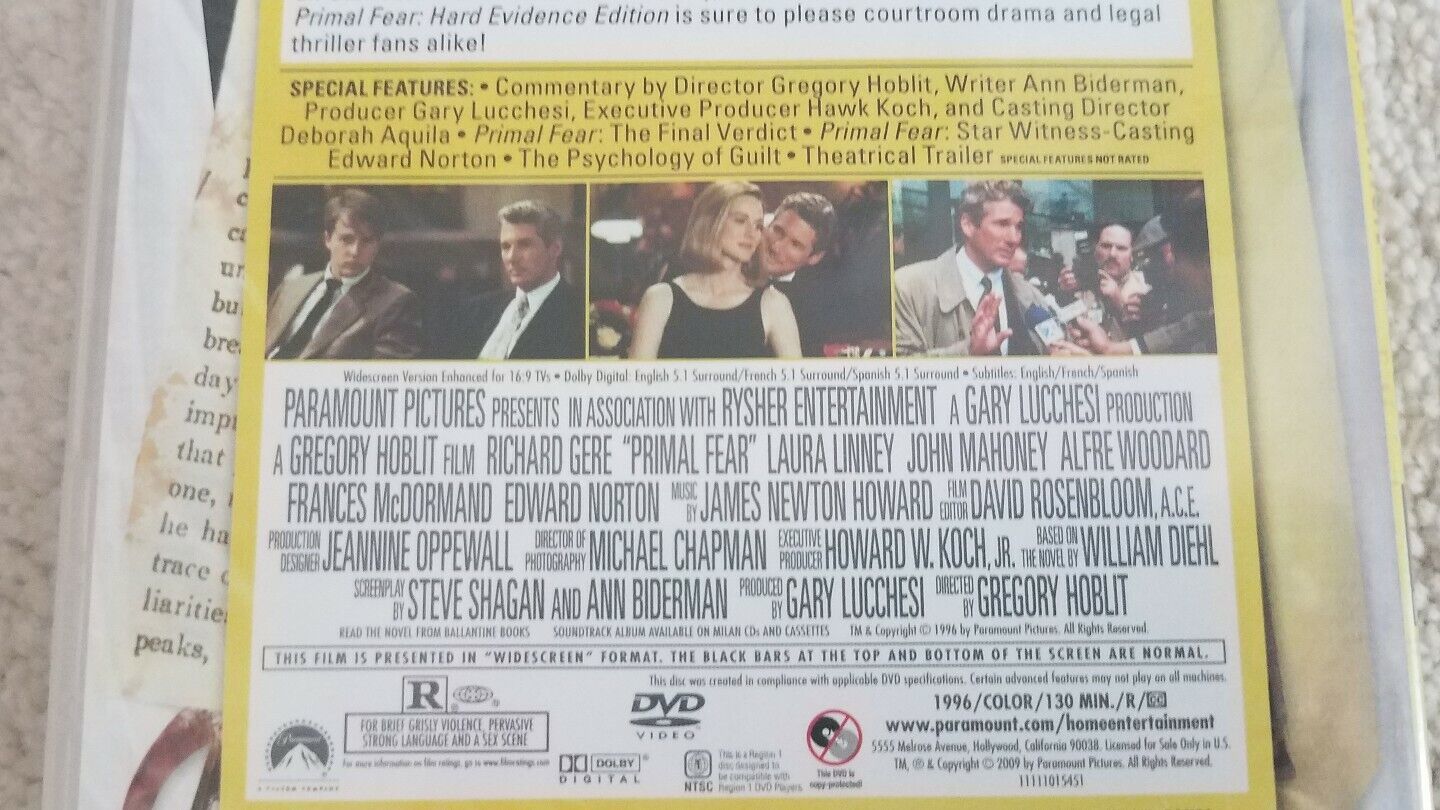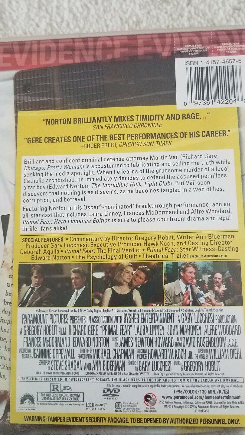 Primal Fear Nouveau DVD Scellé Richard Gere and 50 similar items