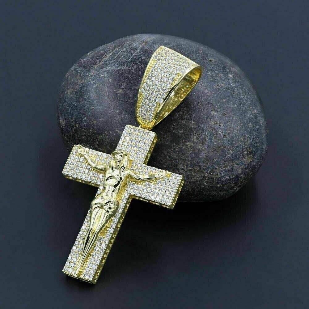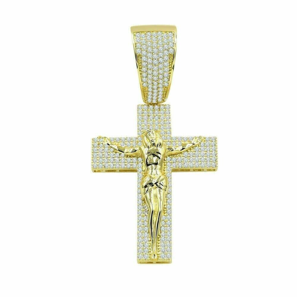 1.20Ct Round Cut Lab Created Diamond Jesus Cross Pendant 14K Yellow Gold Plated