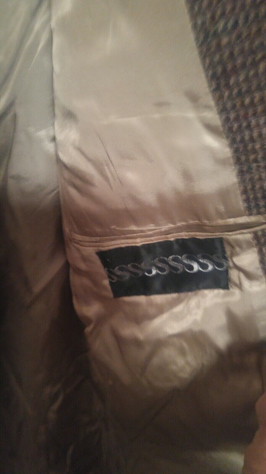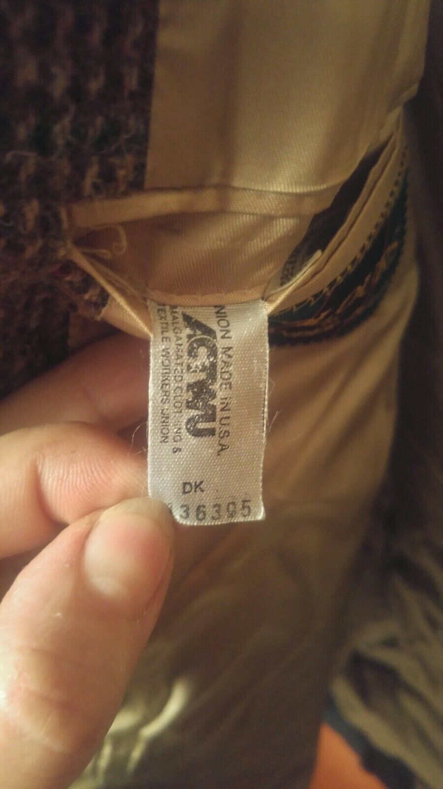Here is a good used condition suit blazer jacket. Size tag is not seen. Material feels like a wool or tweed style. Measures 20 inches pit to pit. Sleeve is 26 inches.