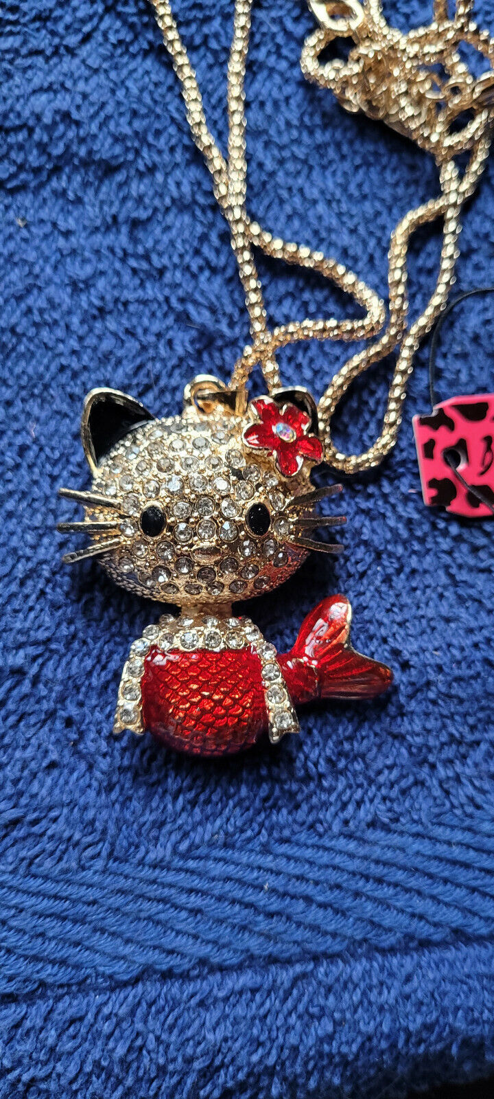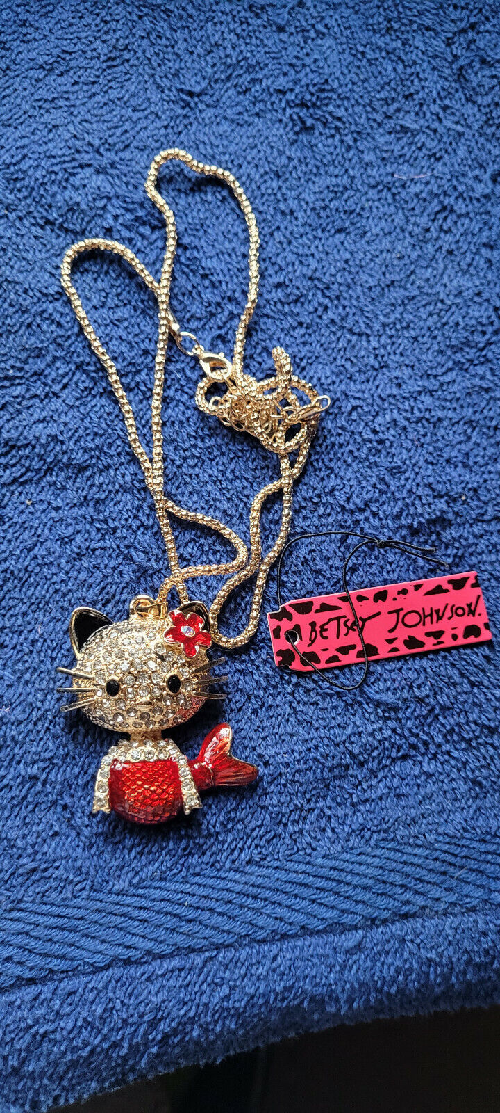 New Betsey Johnson Necklace Cat Mermaid Red and 50 similar items