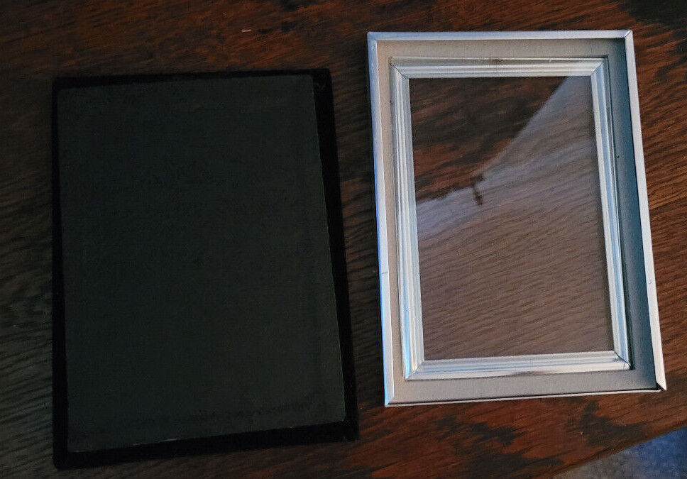 This frame is in good used condition. There are no cracks or chips in the glass. Measures approximately 6"x4.25". Would make a nice addition to a collection.
