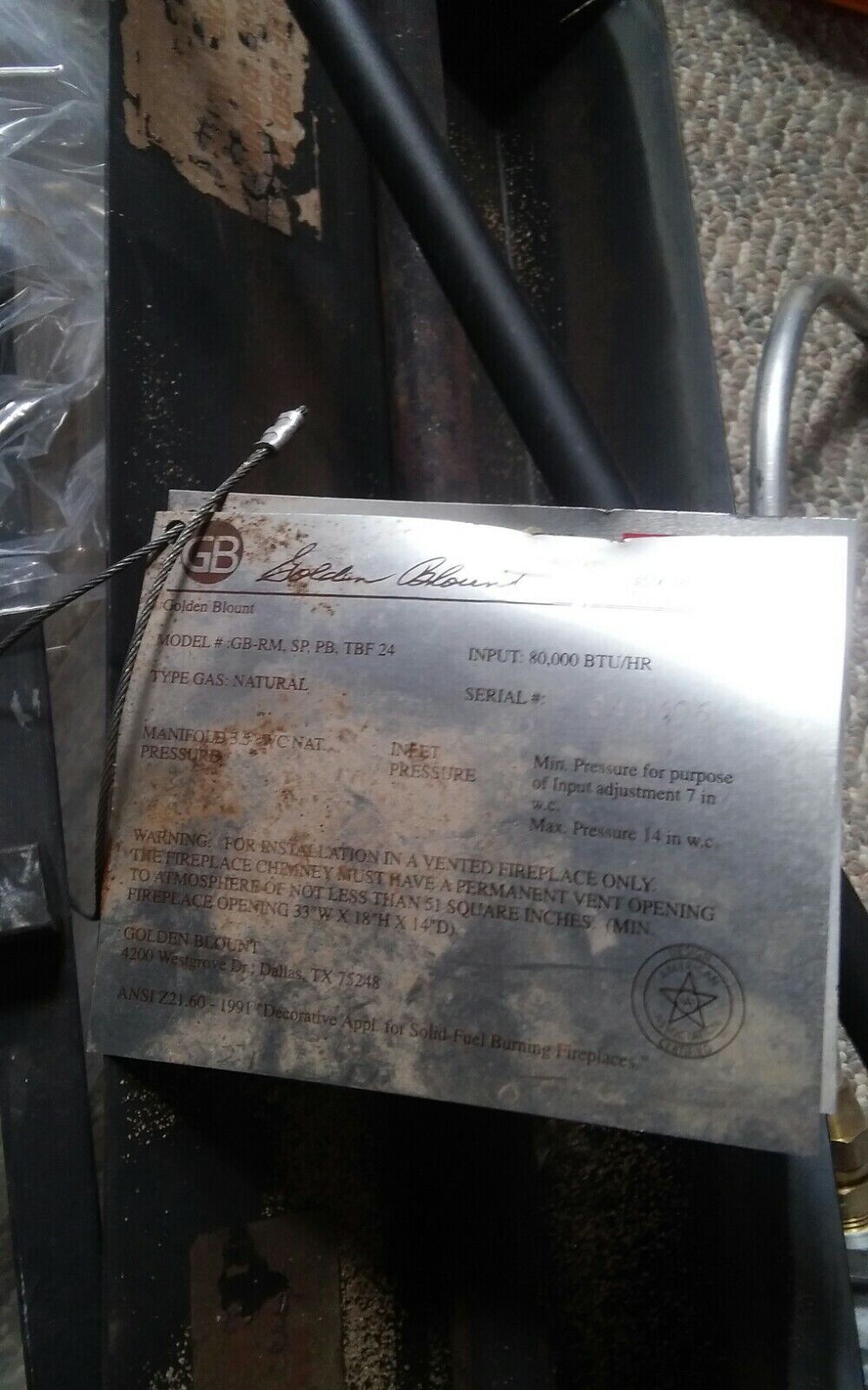 Here is a used set of natural gas fire logs. Golden Blount. Majestic Logs. Unit is used. May need a little repair to work properly. Has been in storage a while. One of the lines has been bent. Local pick up is a option due to size. I may consider parting out if you don't need the whole unit.