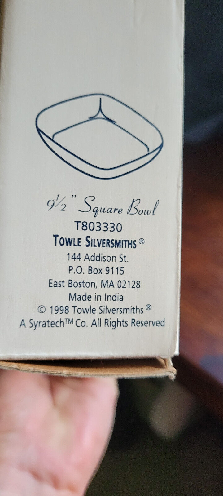 9.5" Square Bowl The Pintel Collection Towle Silversmiths India Shiny Decorative