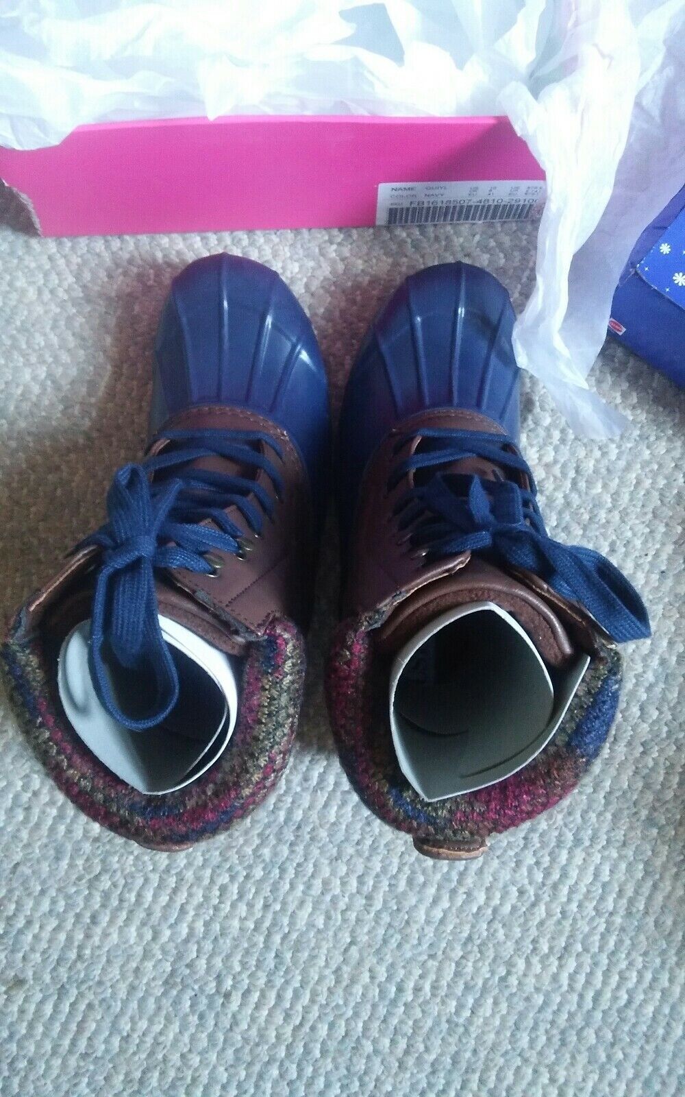 NIB Just Fab Quiyl Navy & Brown Rain Boots and 50 similar items