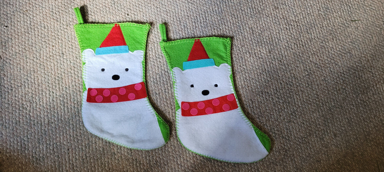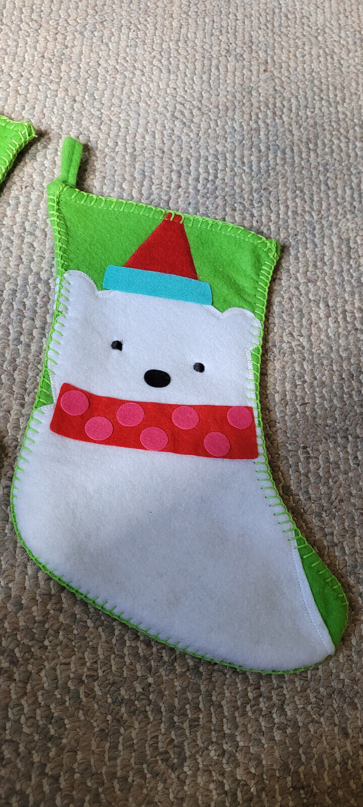 Set of 2 Homemade Polar Bear Stocking Christmas Holiday Crafts 14"x9" Decorate