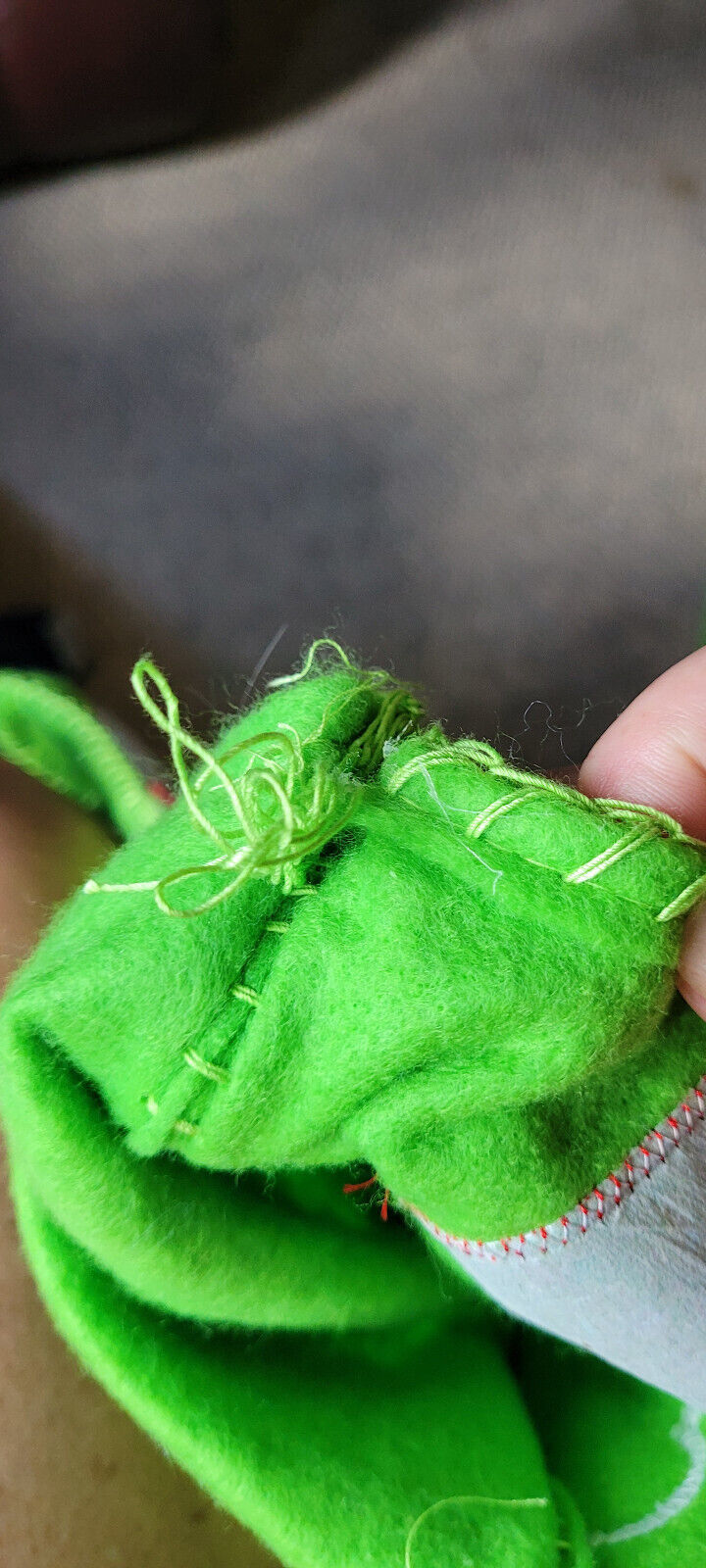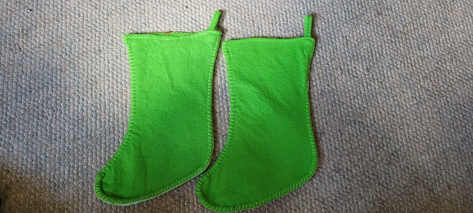 This set of stockings appear to be homemade. They are both in good used condition. They are super cute. Would make a nice addition to a holiday mantle.