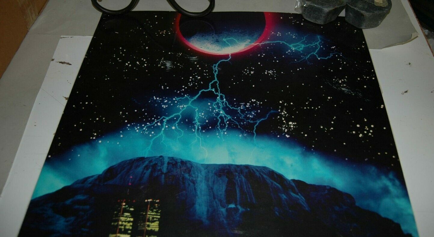 Here is a good used condition poster of New York with a mountain and lightning and moon in the background. Has some storage wear.. Will be shipped rolled. Rare poster.
