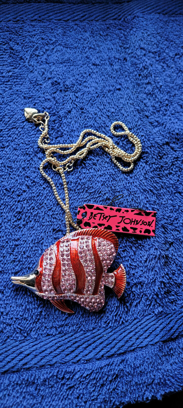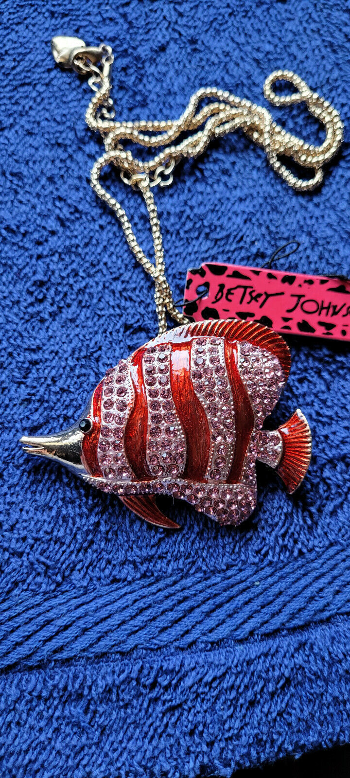 New Betsey Johnson Necklace Fish Red White Rhinestone Tropical Beach Collectible