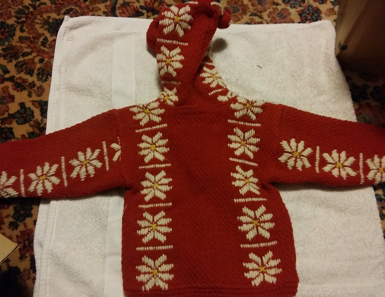 0015 Vintage Nantu Famia Childrens Hand Made Wool Size 1 Hoodie Inca Snowflakes?