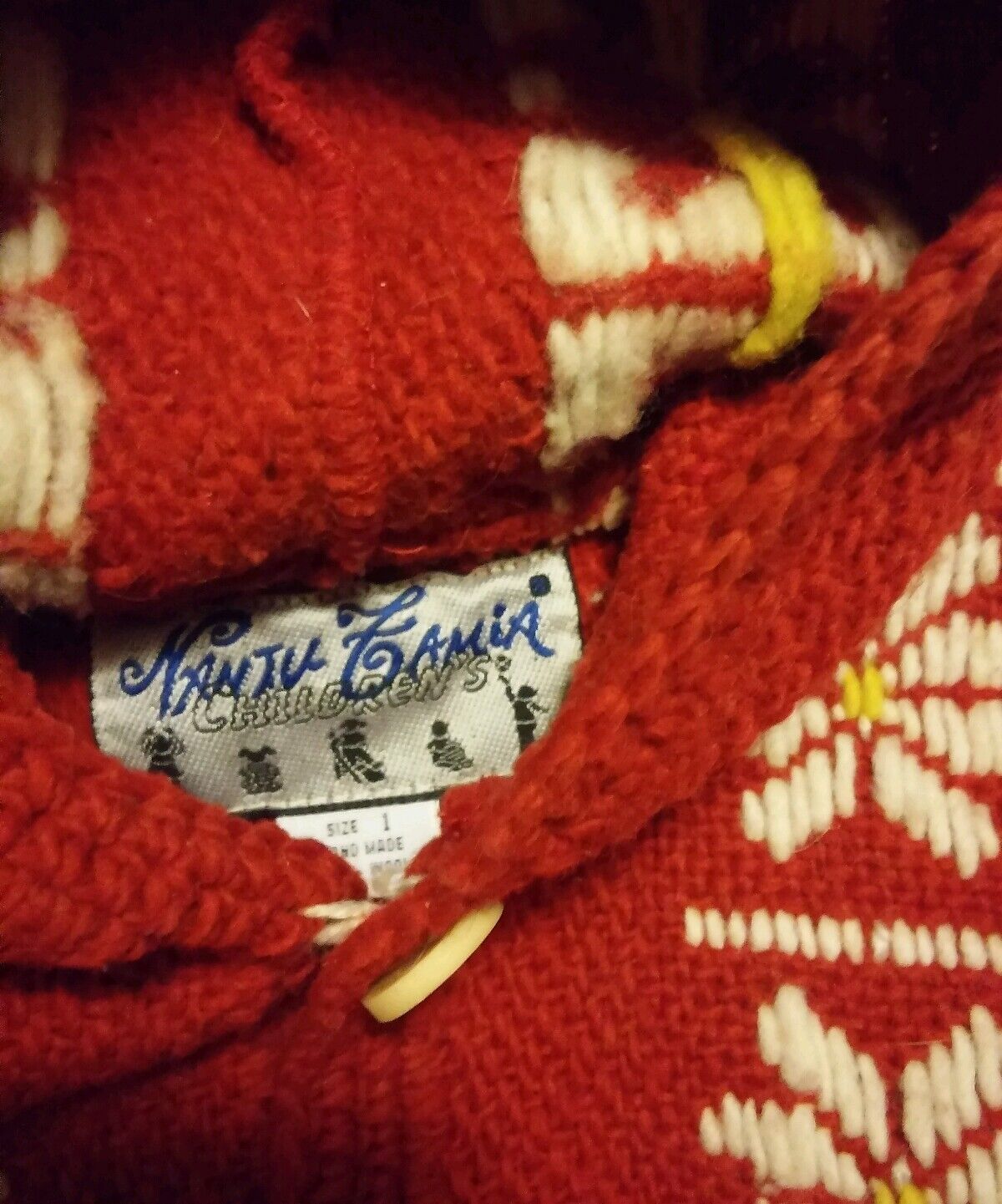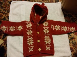 Here for bids is a neat vintage sweater button up hoodie hand made in Ecuador. Nantu Famia. Size 1. Age is unknown. Top button is a little loose. Measures aprox 11 inches from pit to pit. Not 100% sure the design but its kind of snowflake like. See photos and ask any questions Thanks for bidding and good luck. Check out all my items for some great finds I can combine shipping on most things.