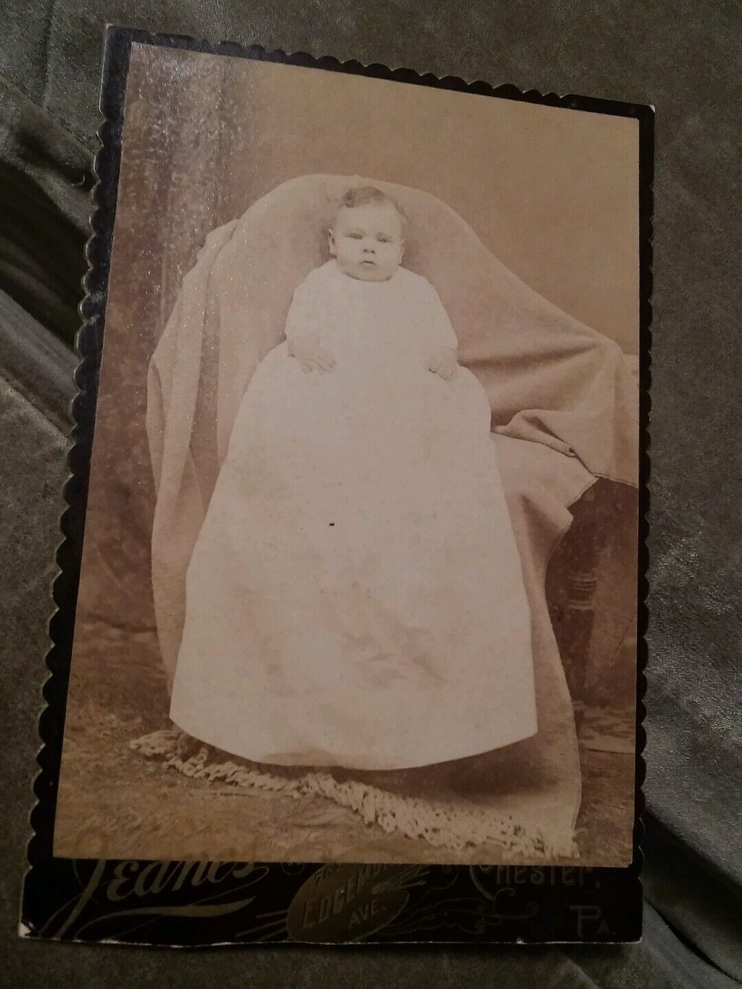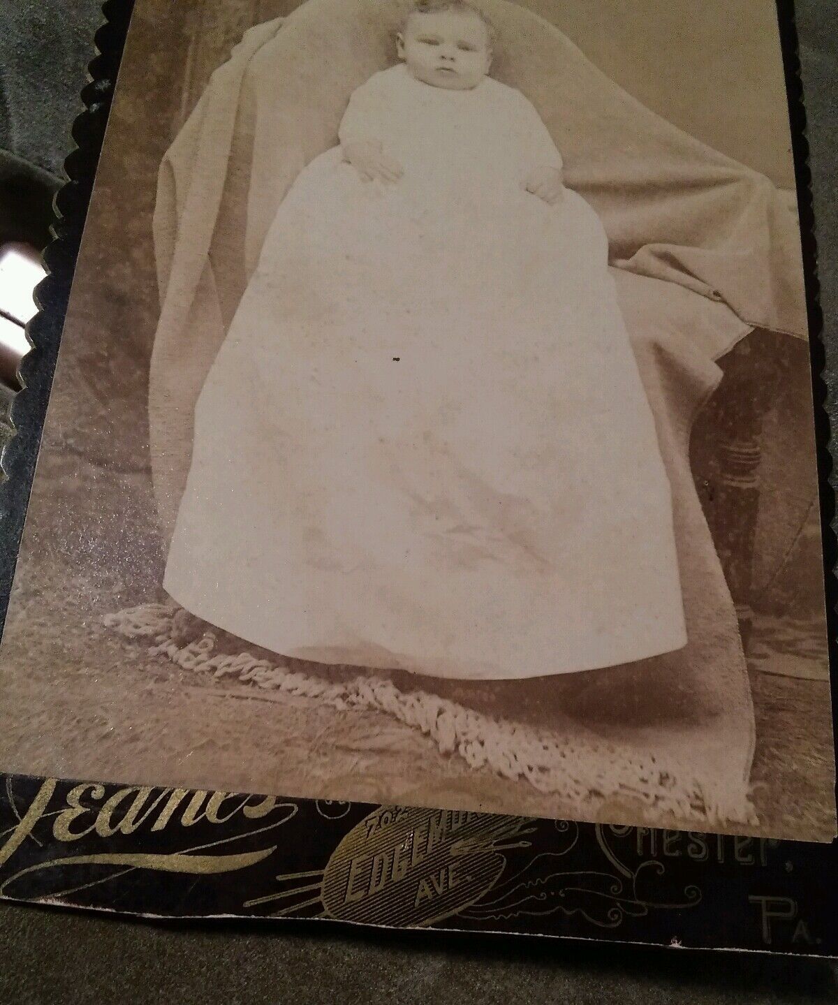 009 Vintage 1890 Victorian Baby Cabinet Card Photo Chester PA