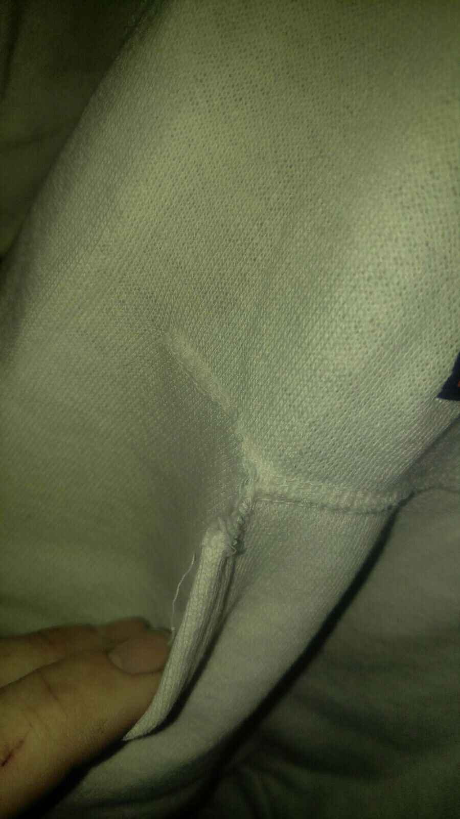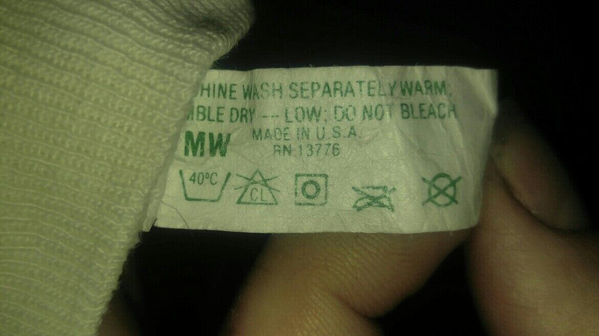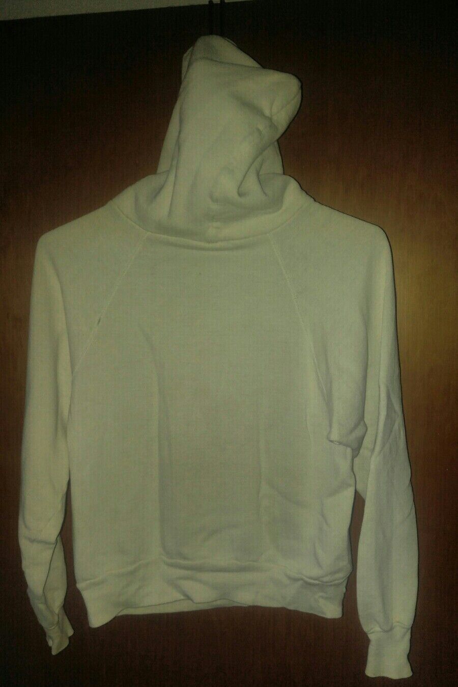 Here is a good used condition vintage hoodie. No size or maker tag. Youth size or small female adult. Measures 17 inches pit to pit. 21 inches shoulder to bottom. Has a small hole at the arm seam. Small tear at the pocket seam. Some light staining.