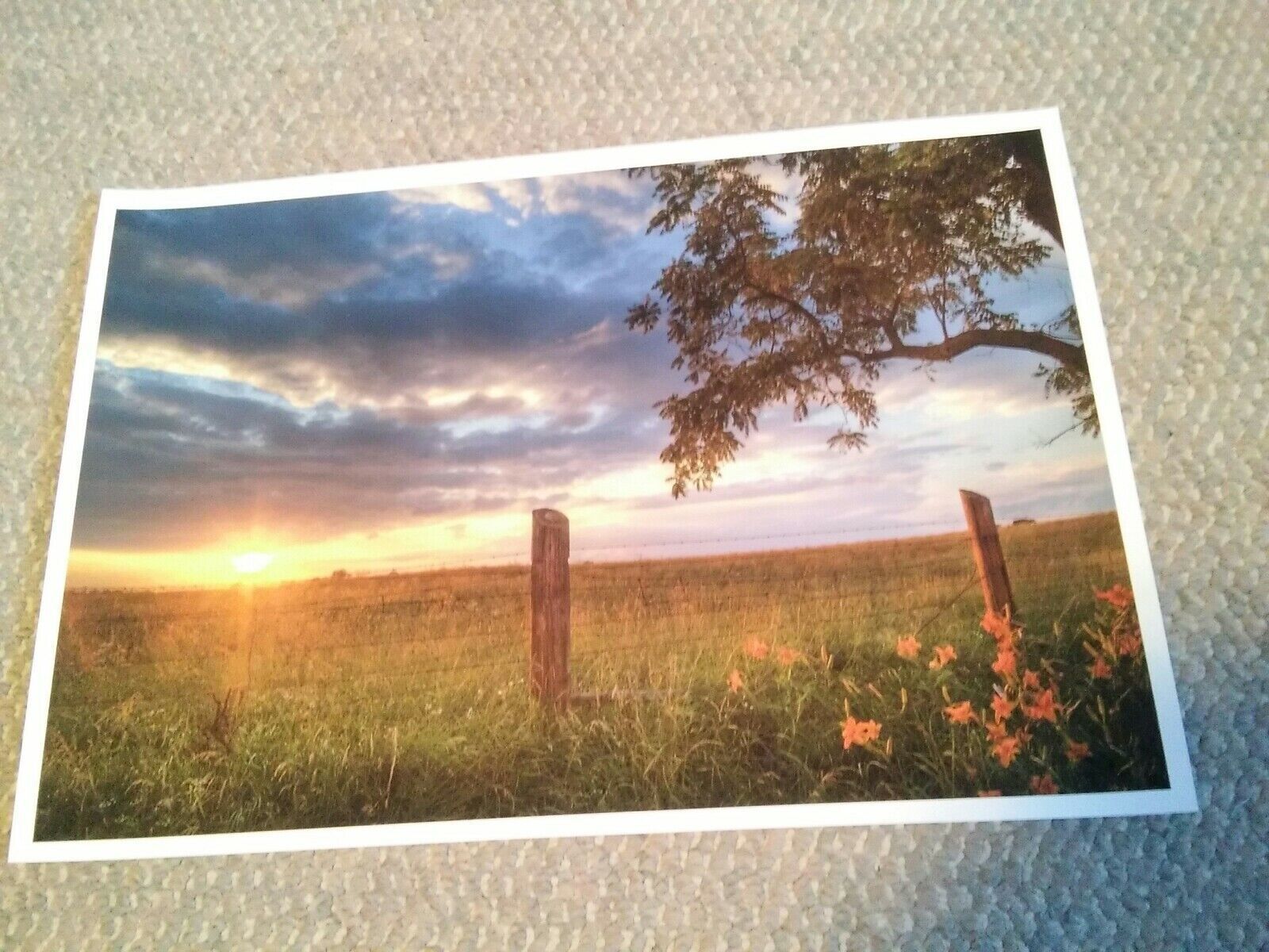 19x13 Digital Art Photograph Beautiful Sunset Fence Row Landscape Countryside