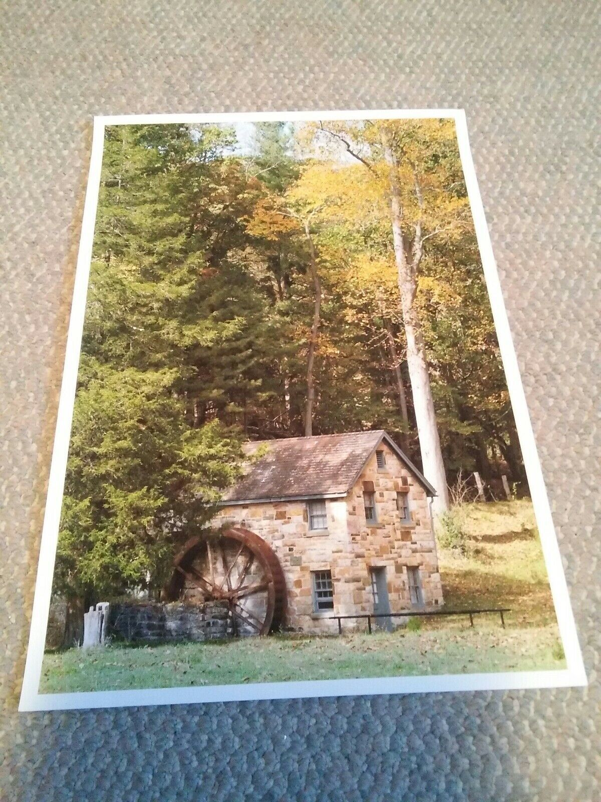 19x13 Digital Art Photograph Water Wheel Grist Mill Stone Building In The Woods