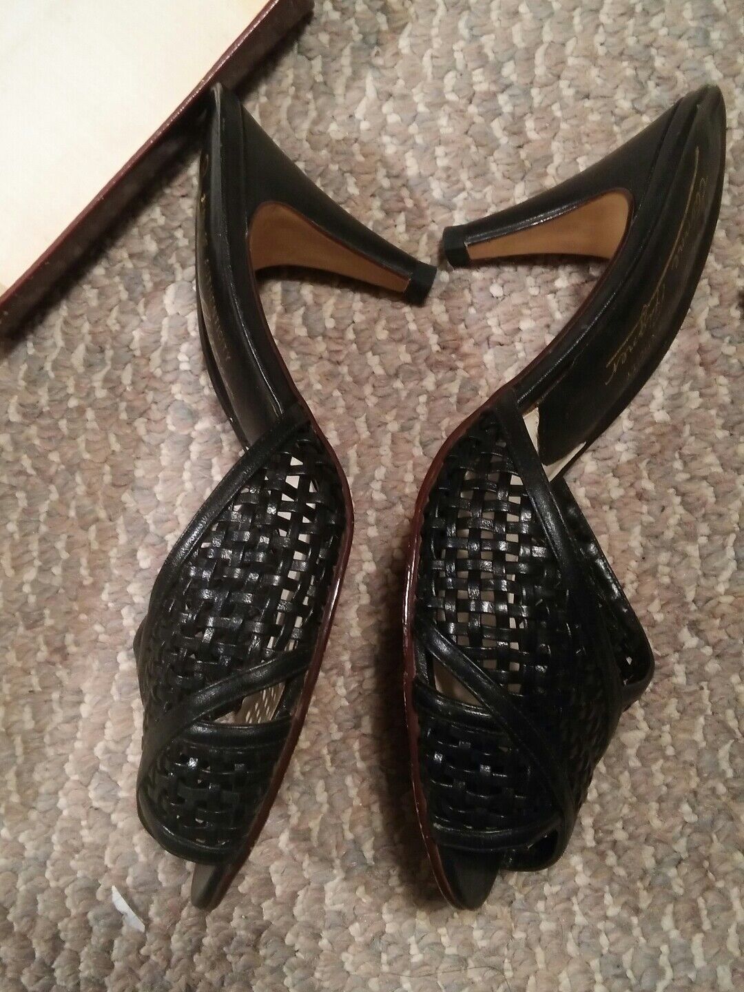 000 Vintage Etienne Aigner Size 7M Pumps Open Toe Wicker Black In Box