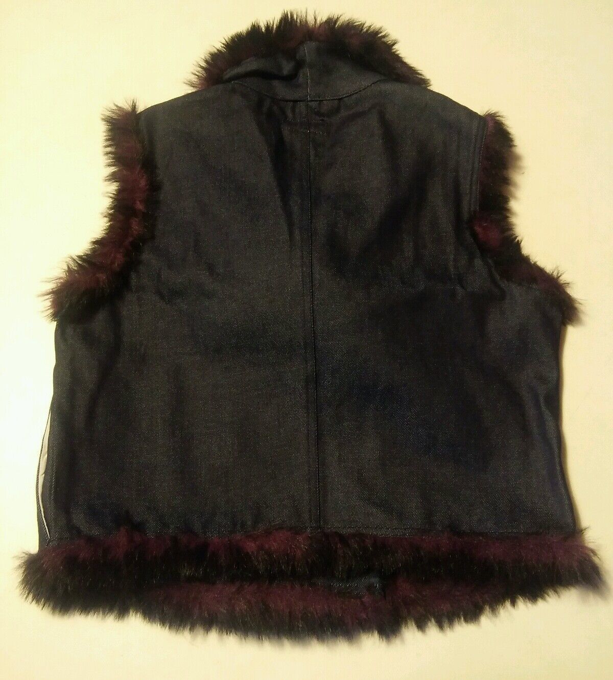 Here for bid is a funky Karl Kani KK2 vest size large. Dark blue denim with black and purple fur. Has a 4 snap button front. I have the matching skirt on another auction. Measures about 20 inches form pit to pit. Very small soiling area right above the waist. See photos and ask any questions. I do my best to describe all items. Sometimes I miss things.. Please Please ask questions. Thanks for bidding and good luck. Check out all my items for some great finds. Lots of cool stuff at my sales. I can combine shipping on most.
