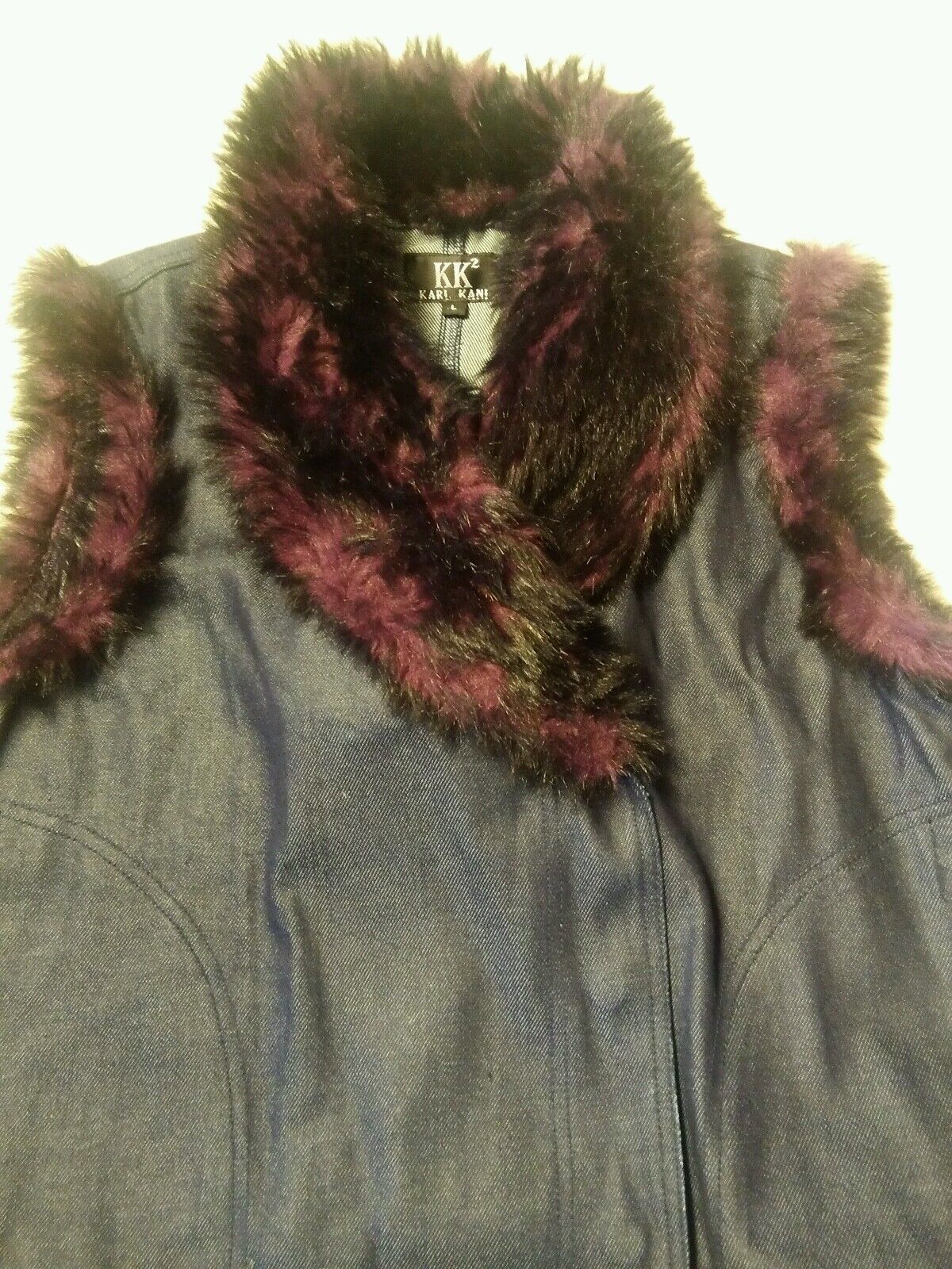 Karl Kani KK2 Dark Blue Denim Jean Vest With Purple Fur Accents Size Large