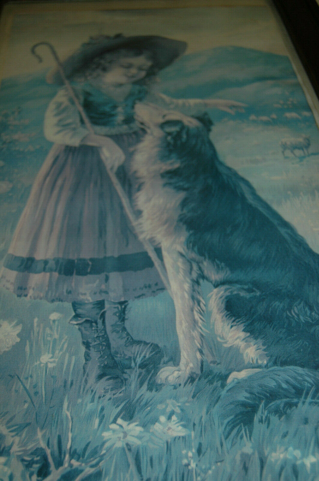 Vintage Print of Little Girl With Collie Dog Sheep 27h 151/2w