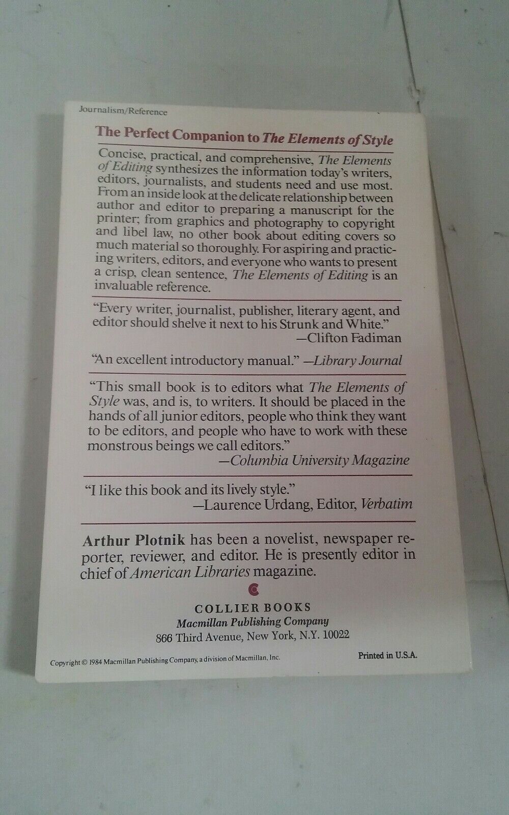 The ELements of Editing A Modern Guide Editors Journalists Arthur Plotnik PB