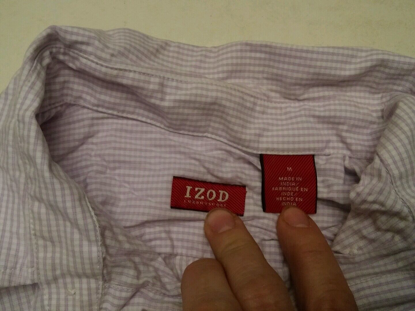 Here for bids is a used Medium Izod Luxury Sport purple checks shirt. Shirt is very wrinkled from storage and has some faded areas on the back. Measures 17 inches from pit to pit. See photos and ask any questions Thanks for bidding and good luck. Check out all my items for some great stuff I can combine shipping on most things.