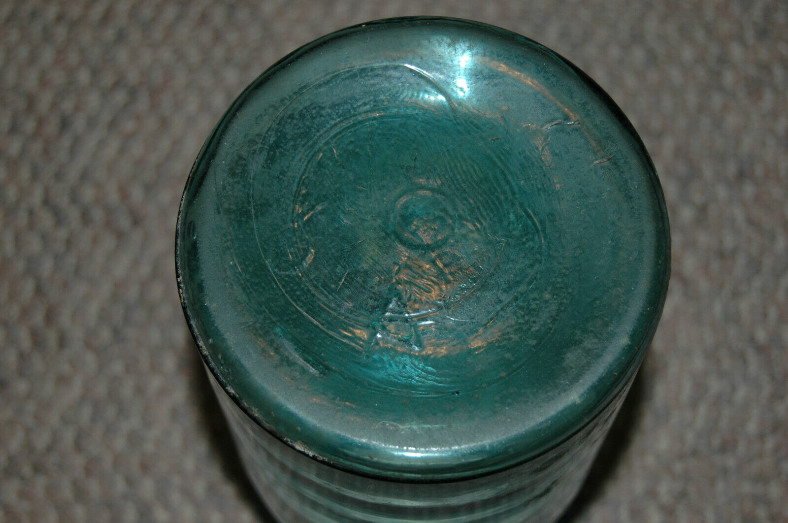 Vintage Early Ball Mason Jar Blue Aqua #54 Swirl & Bubble 5-4 9" Tall