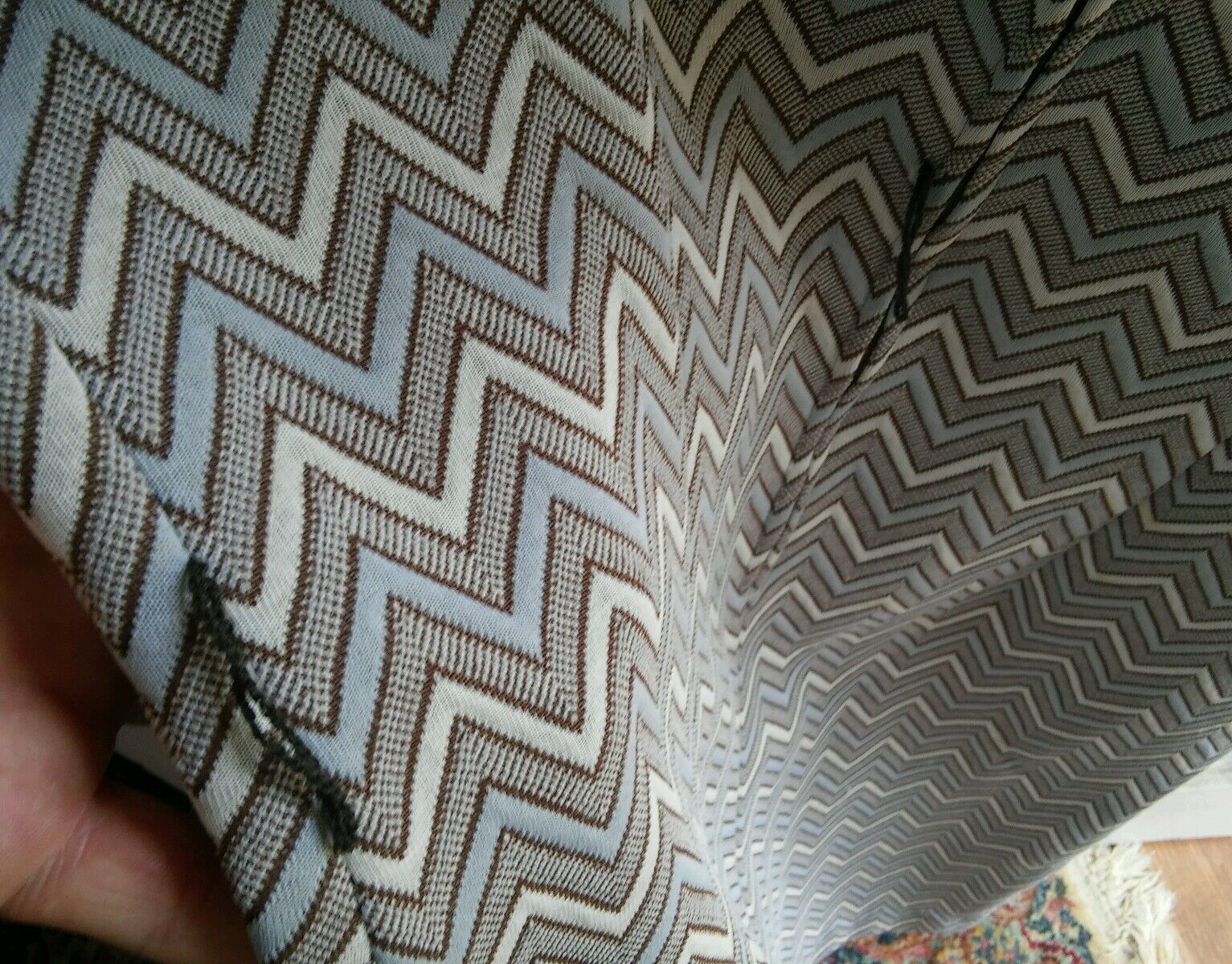 Here for bid is a nice funky mid century era Lady Carol of New York dress. Actual age is unknown. Has a great zig zag pattern. Size is not stated on tag or it has faded off. Measures about 19 inches from pit to pit across bust area. Short short sleeves. May be a little musty from storage. There are 2 black loops out the back where there may have been a belt at one time. Measures aprox 40 inches from shoulder to bottom. See photos and ask any questions. Thanks for bidding and good luck.