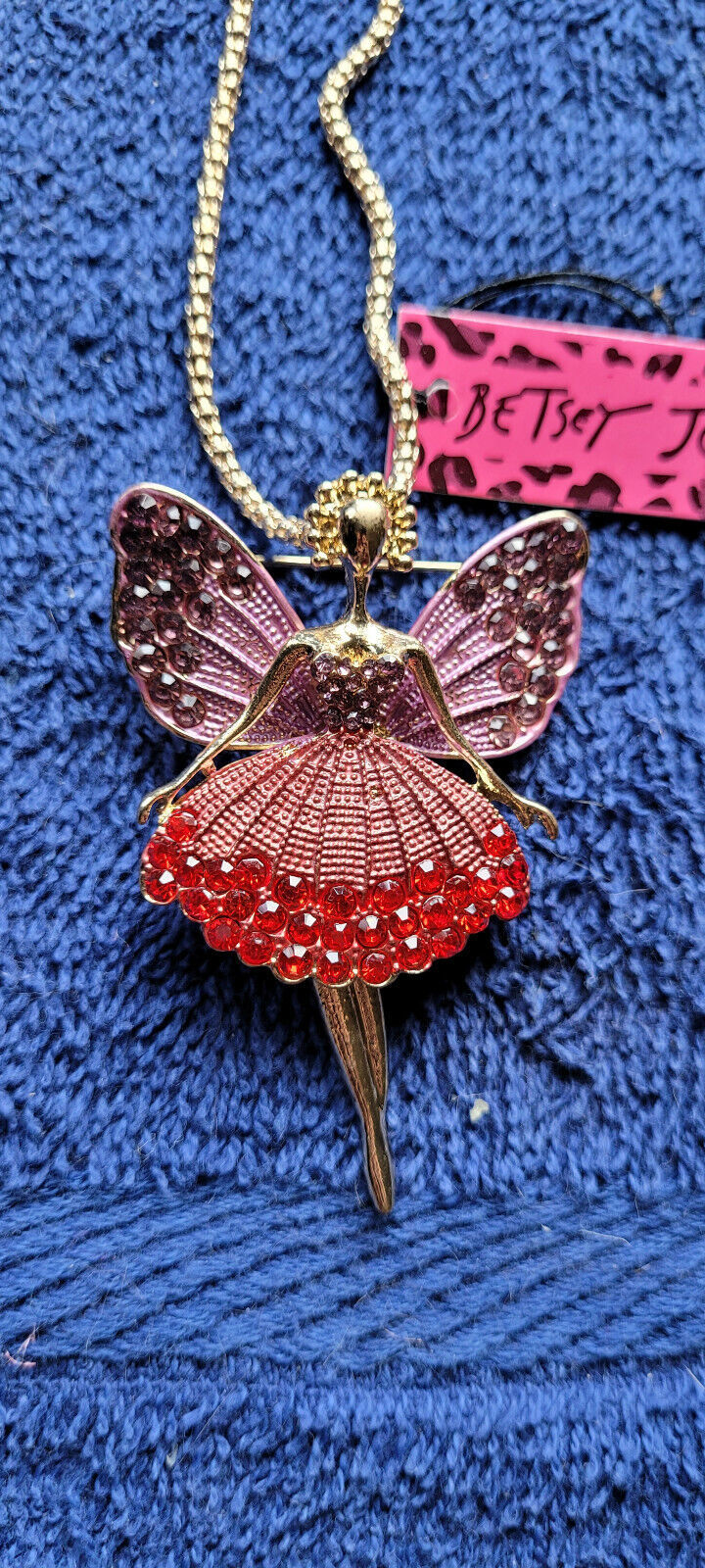 New Betsey Johnson Necklace Fairy Ballerina Pink Red Cute Collectible Decorate