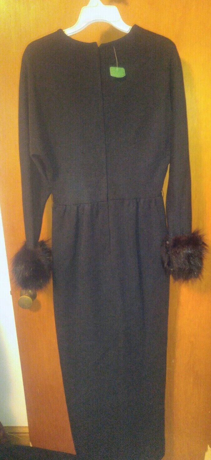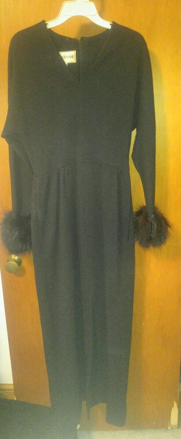 Vintage Junior Accent Size 16 Black Long Dress "Fur" Cuffs Matrix Goth Adams Fam