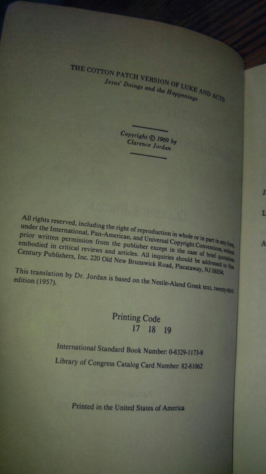 The Cotton Patch Version of Luke Acts Clarence Jordan Paperback Book