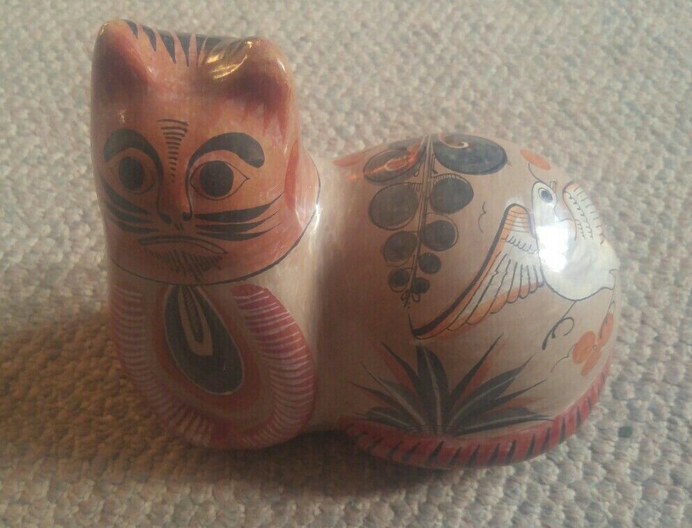 Here is a great condition Mexico made and painted cat. Age is unknown. Measures approx 7x7 inches. No chips or cracks noticed.