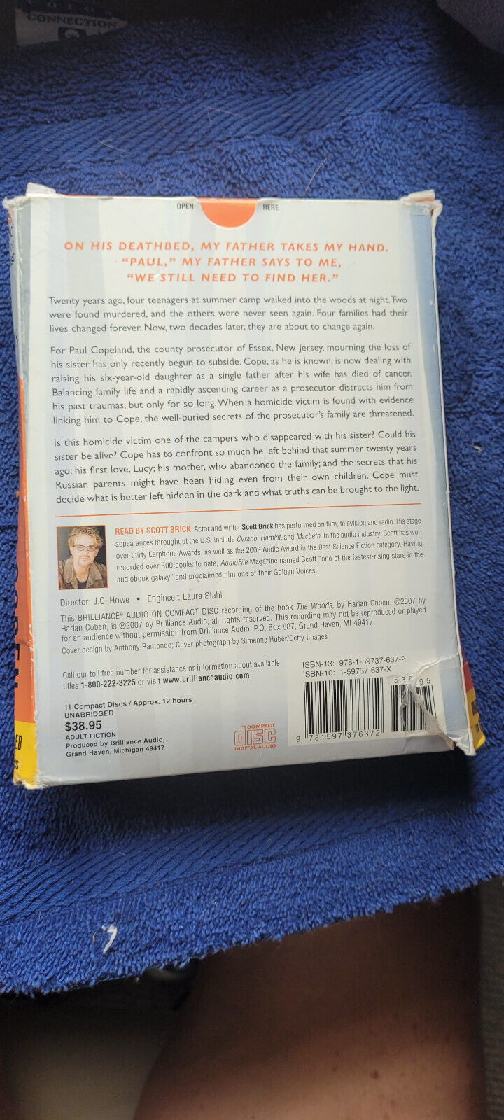 This set of 11 cd's is in good used condition. The box shows wear from use and storage. There are a few cd's that have a few scratches on them. They are untested. Harlan Coben The Woods Read by Scott Brick.