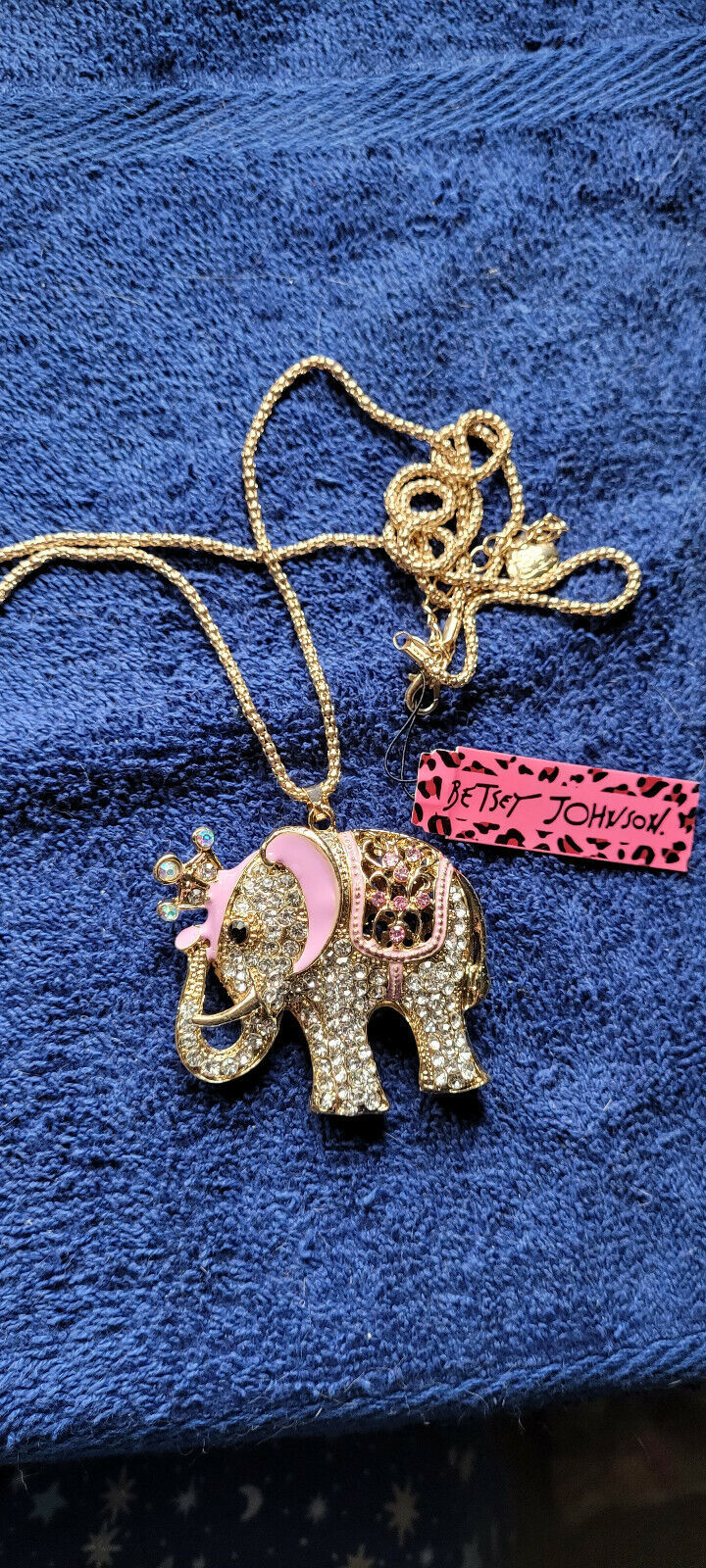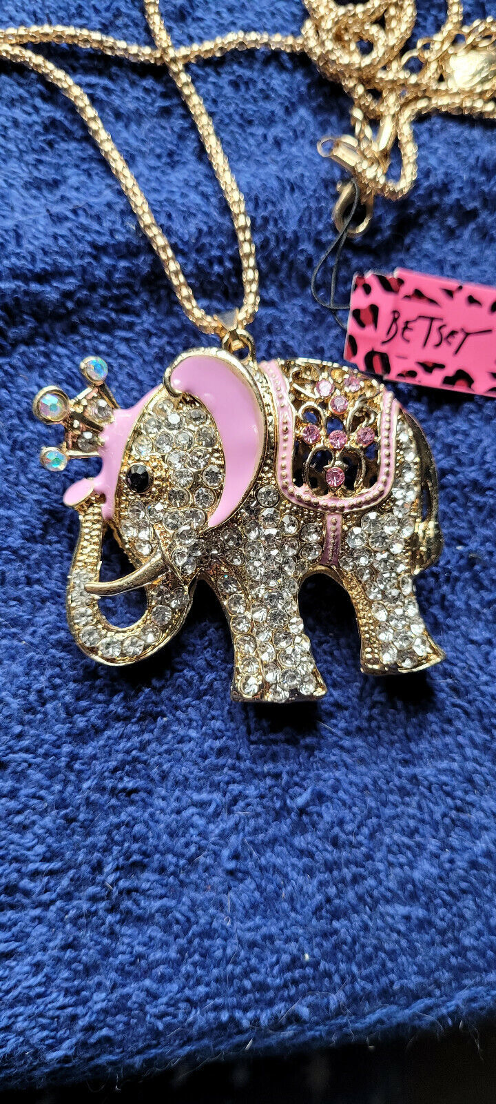 New Betsey Johnson Necklace Elephant Rhinestone Cute Collectible Decorative Nice