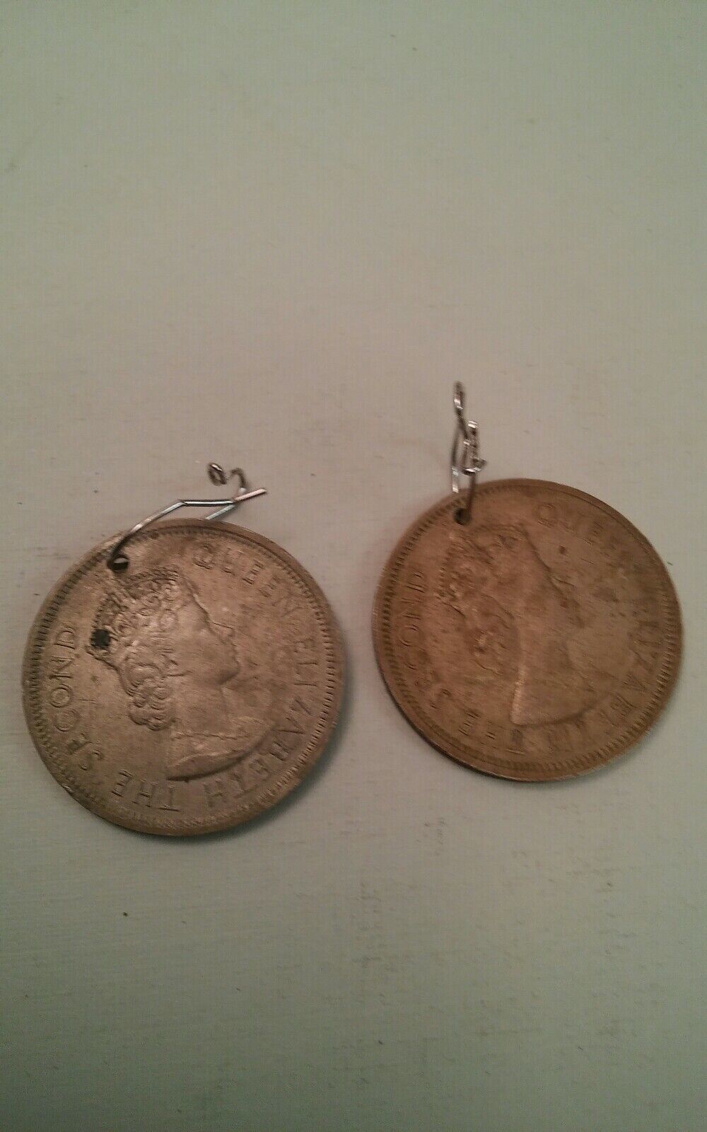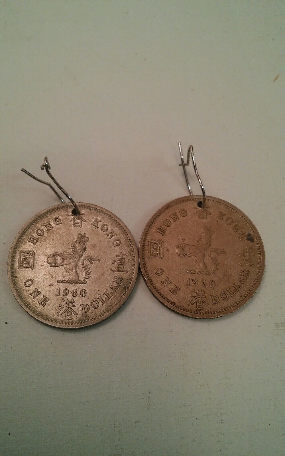 Here are 2 1960 Hong Kong dollar coins turned into earrings. These were picked up from an estate.