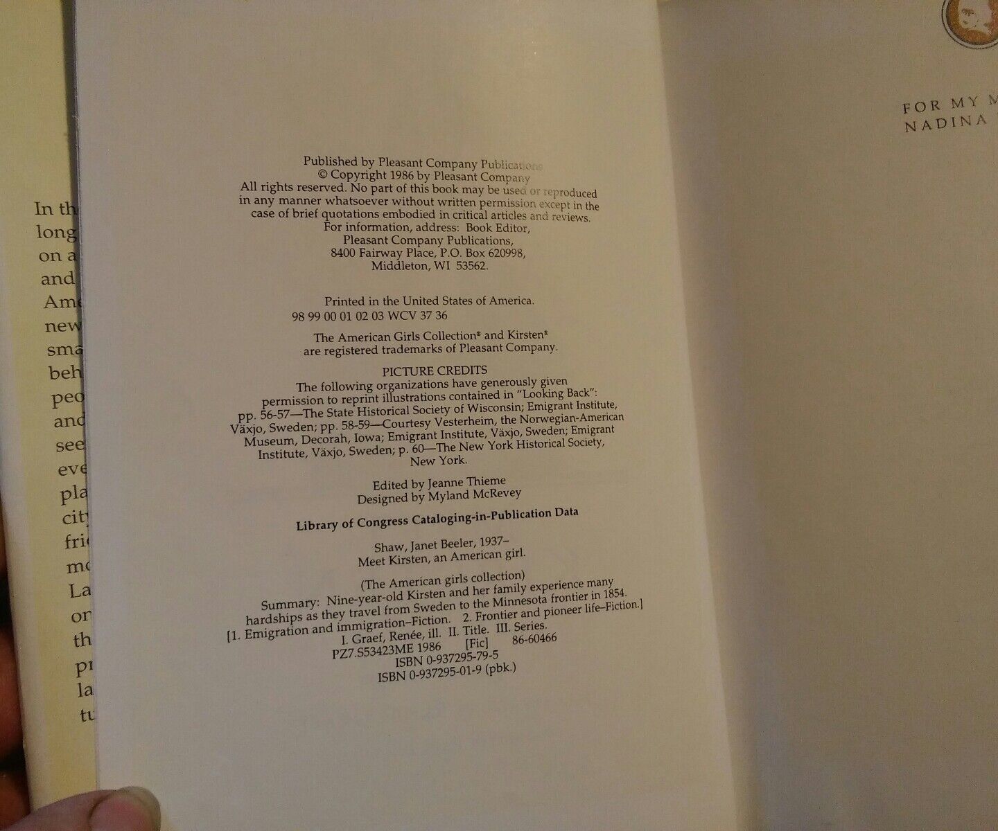 039 Meet Kirsten An American Girl Book 1 Hardback Dust Jacket