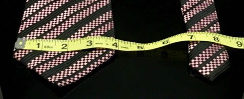 You Are Buying A GEOFFREY BEENE BLACK Pink SQUARE BLOCKS Stripe SILK NECKTIE TIE Unique