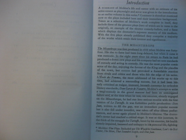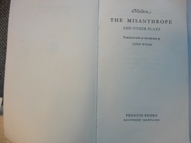 . Moliere, The Misanthrope and Other Plays, Translated by John Wood, C. 1959, R