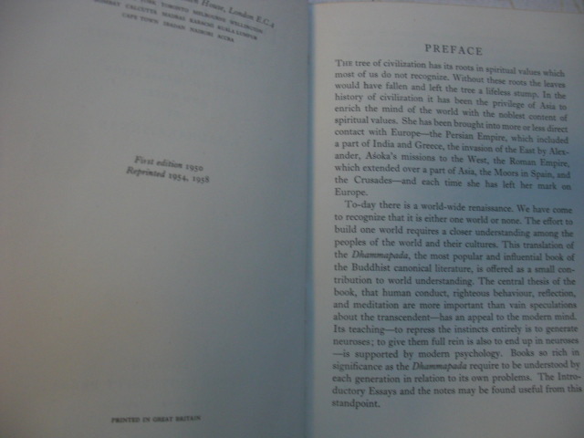 Dhamma means discipline, law or religion; pada the path or way, and together Dhammapada is the 'path of virtue'. This founding text of Buddhist teaching is here presented in both Pali and English by one of India's foremost philosophers and religious authorities, S. Radhakrishnan. The verses of the Dhammapada were believed from very early times to have been the utterances of Gautama the Buddha himself. S. Radhakrishnan here prefaces the text with an introductory essay about Gautama Buddha, and provides explanatory notes in English to the text.