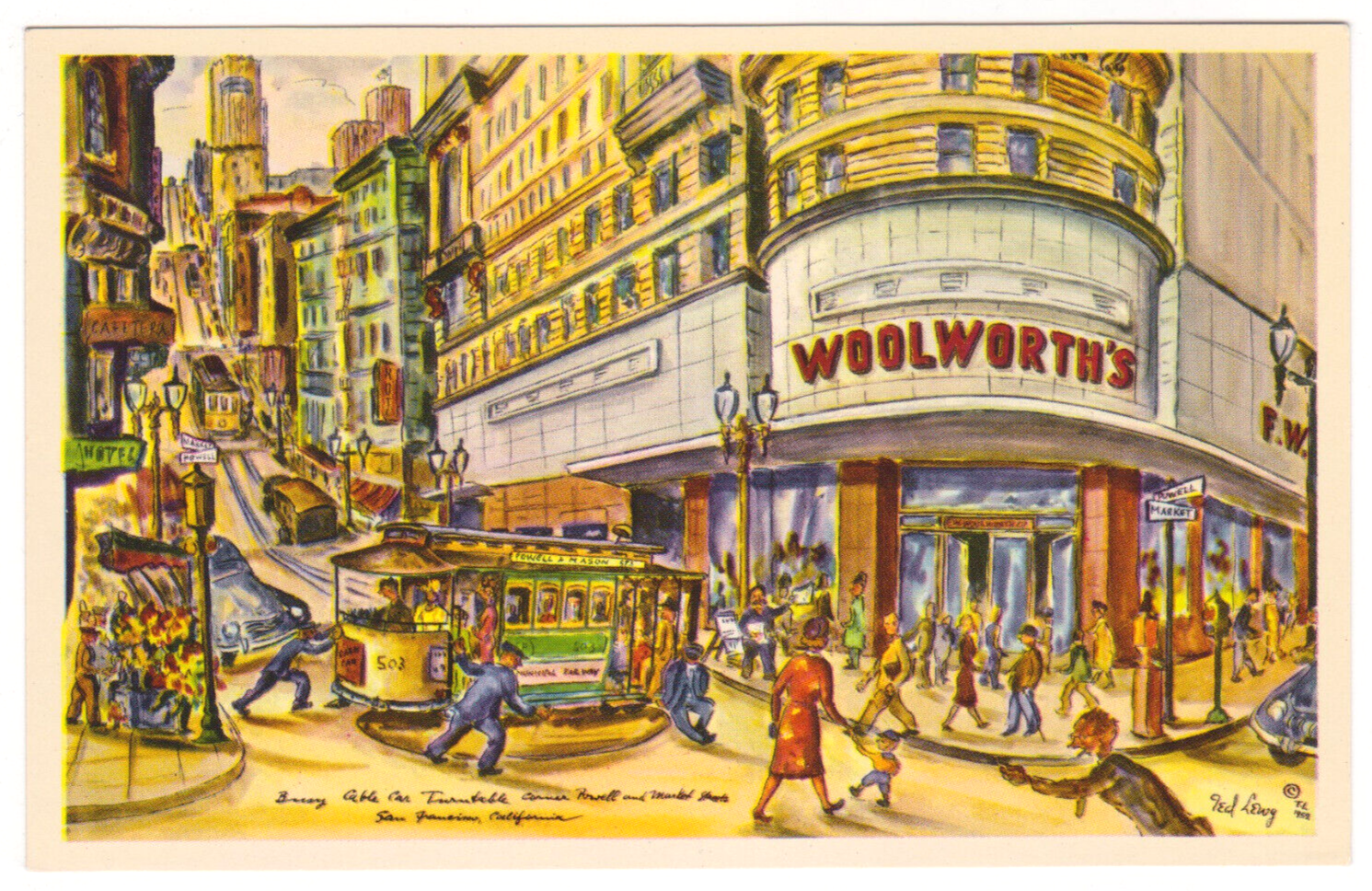 Vtg Postcard-San Francsco's Famous Powell & Market Street Corner-Ted Lewy-CA5