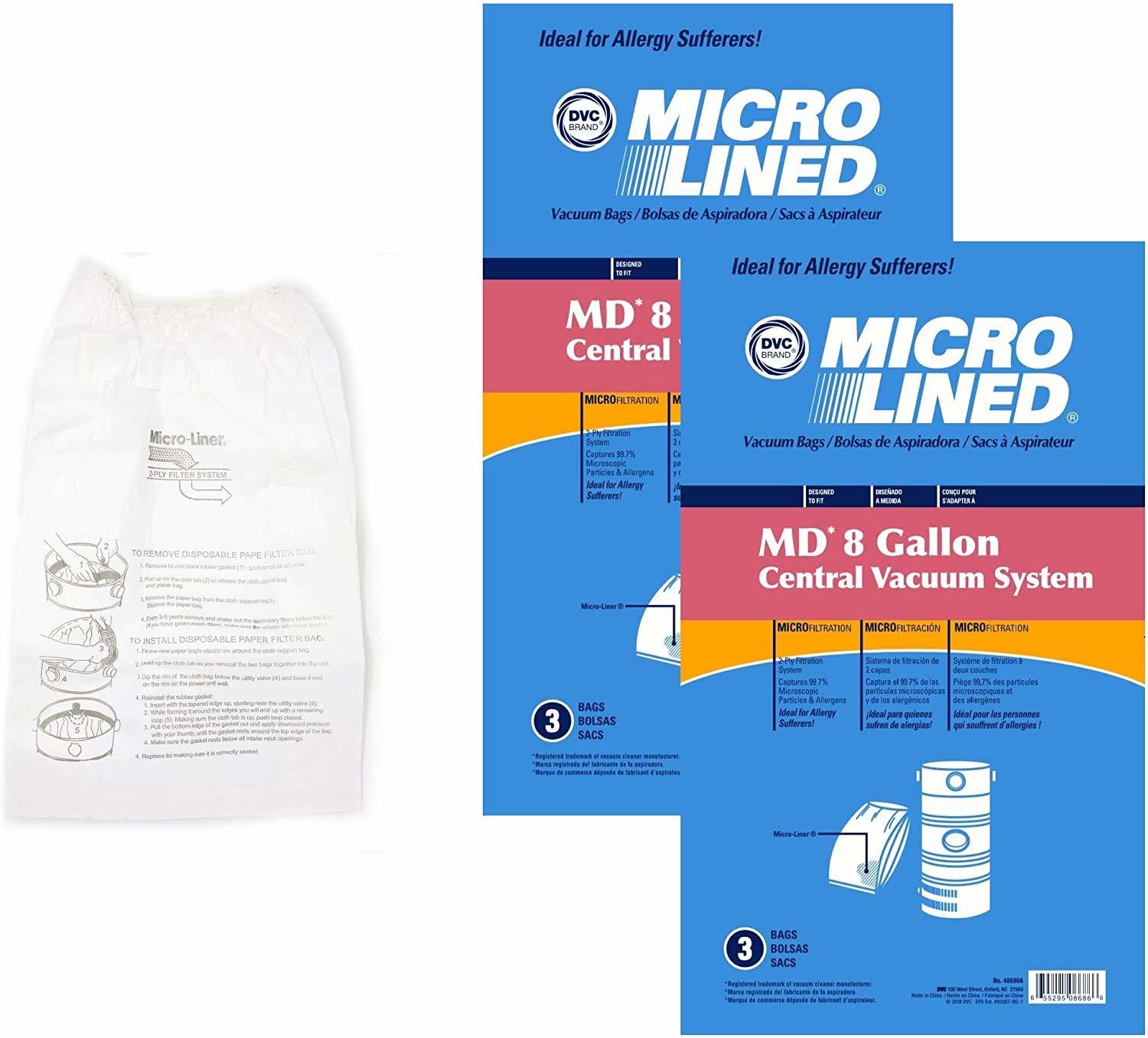 DVC Micro-Lined Paper Replacement Bags Fit Modern Day 8 Gallon Central Vacs - 6