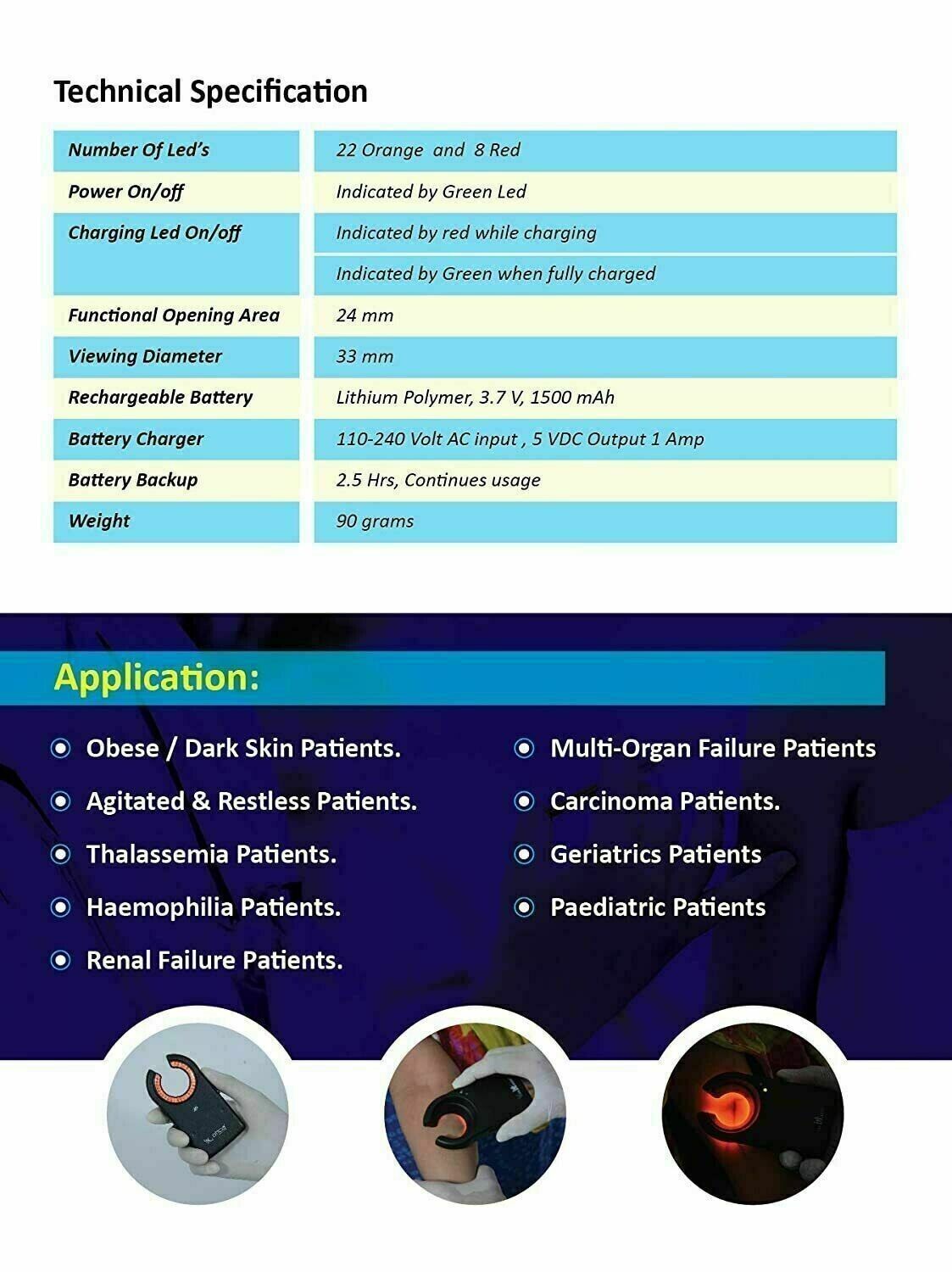 wireless, Hand-held and portable Rechargeable vein finder machine works