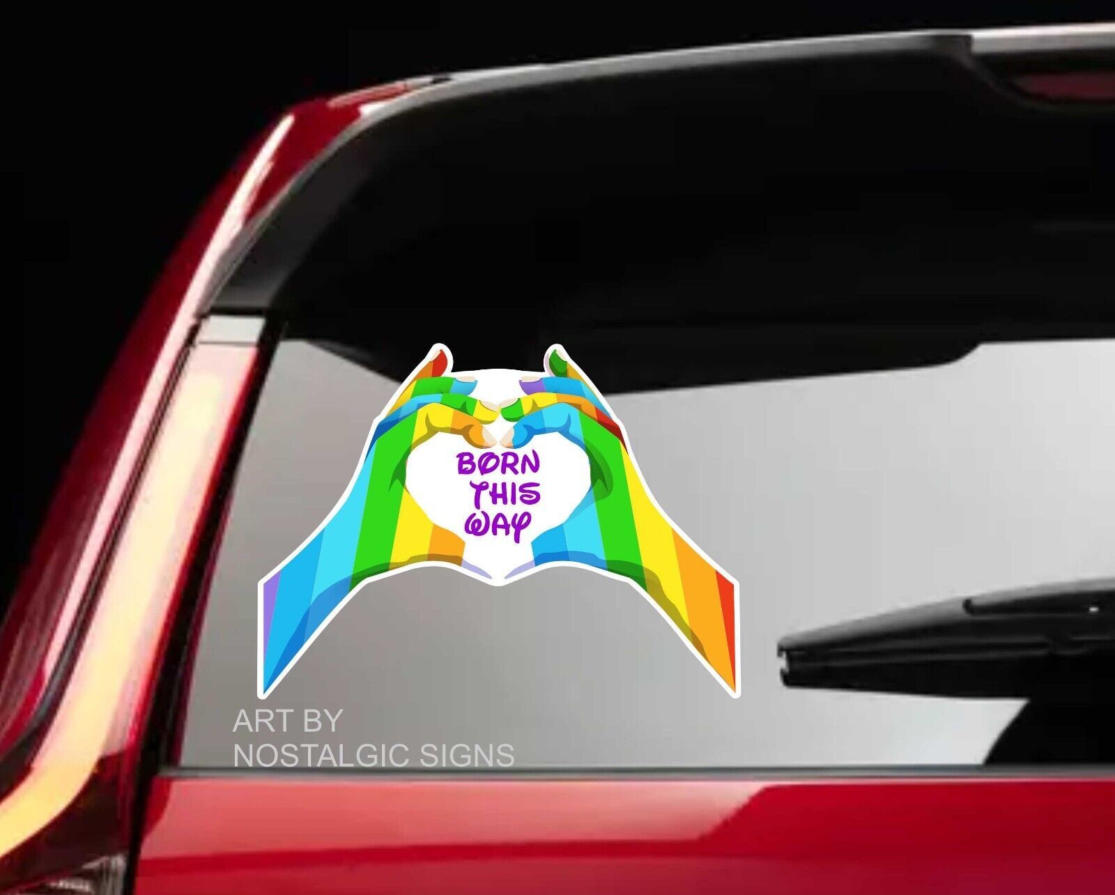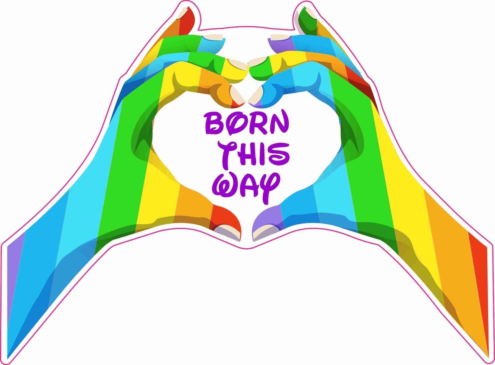 BORN THIS WAY HANDS HEART LOVE LGBTQ+ GAY LESBIAN RAINBOW STICKER DECAL