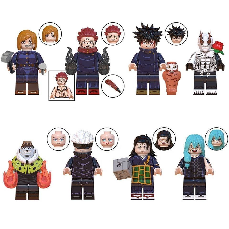 8pcs Jujutsu Kaisen Nobara Kugisaki Yuji Itadori Hanami Jogo Mahito Minifigures