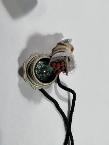 Comes with compass, matches striker, fish hook line. Buttons Safety Pin.