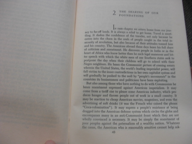 From the back cover: “All over the earth nations and people are struggling with changes which have uprooted their past. The world is looking for an explanation of itself which will bring this chaotic movement again into order, and which will give it meaning, direction, and hope..”