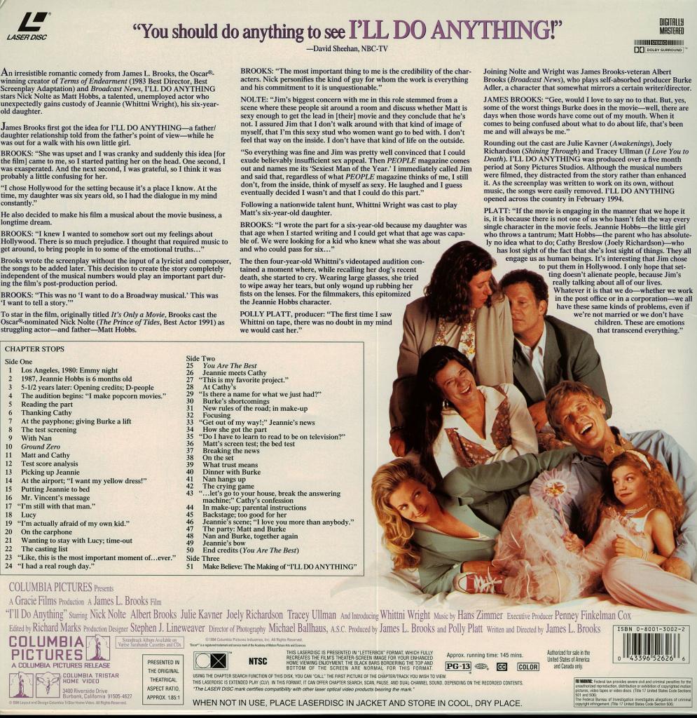 This is a previously viewed LASERDISC of the rare comedy classic I'LL DO ANYTHING, staring