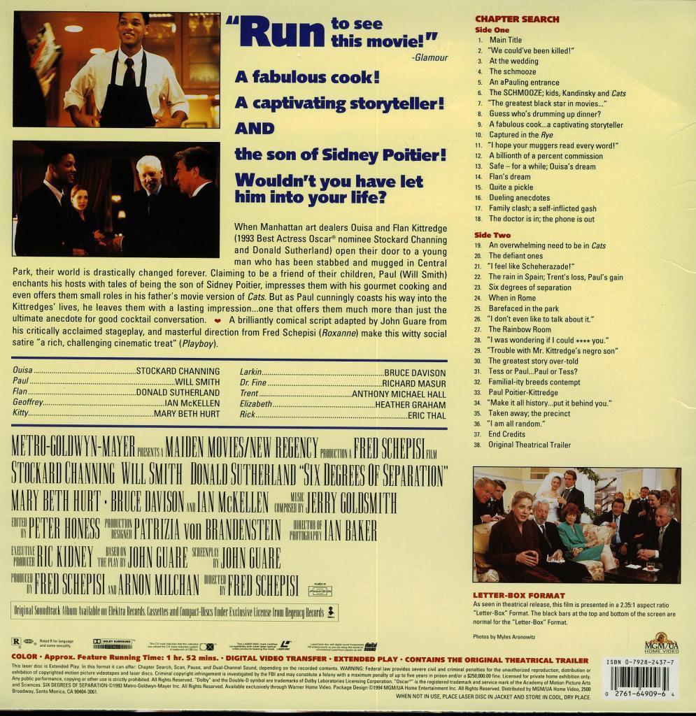 This is a previously viewed LASERDISC of the rare fantasy comedy classic SIX DEGREES OF SEPARATION, staring