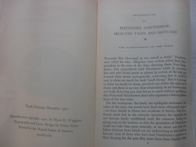 . Nathaniel Hawthorne, Selected Tales land Sketches: introduction by Hyatt H. W
